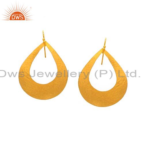 22K Yellow Gold Plated Sterling Silver Hammered Open Teardrop Earrings