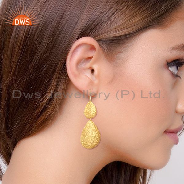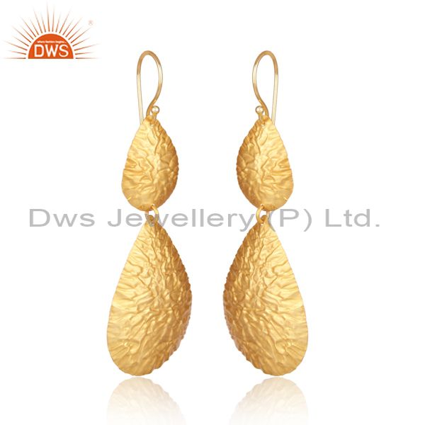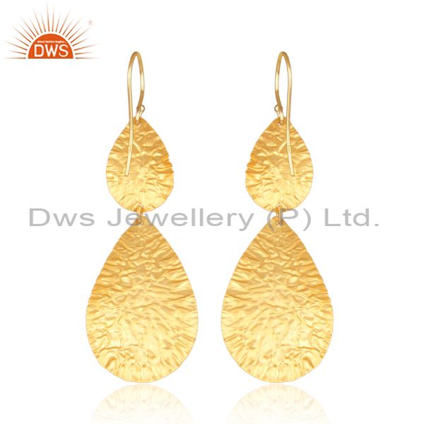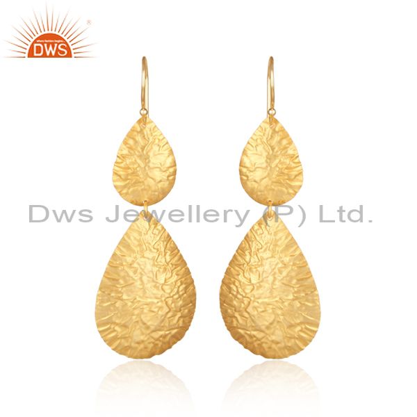 22K Yellow Gold Plated Sterling Silver Hammered Petals Drop Dangle Earrings