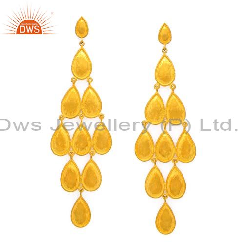 22K Yellow Gold Plated Sterling Silver Hammered Teardrop Chandelier Earrings