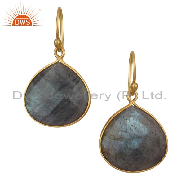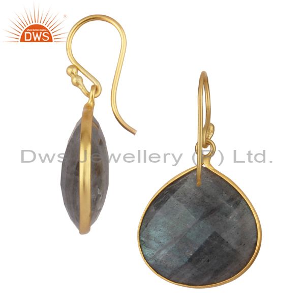 22K Yellow Gold Plated Sterling Silver Labradorite Gemstone Bezel Drop Earrings
