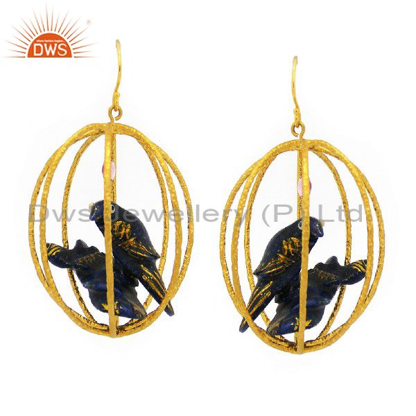 22K Yellow Gold Plated Sterling Silver Lapis Lazuli Designer Dangle Earrings