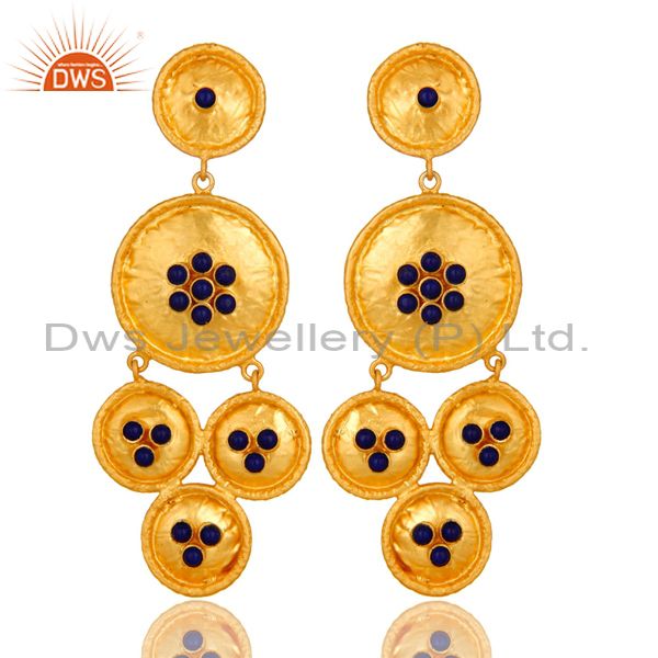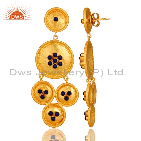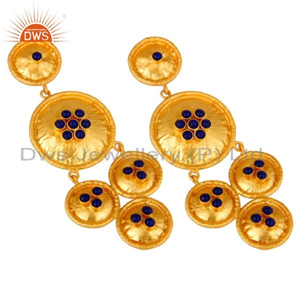 22K Yellow Gold Plated Sterling Silver Lapis Lazuli Hammered Disc Dangle Earring