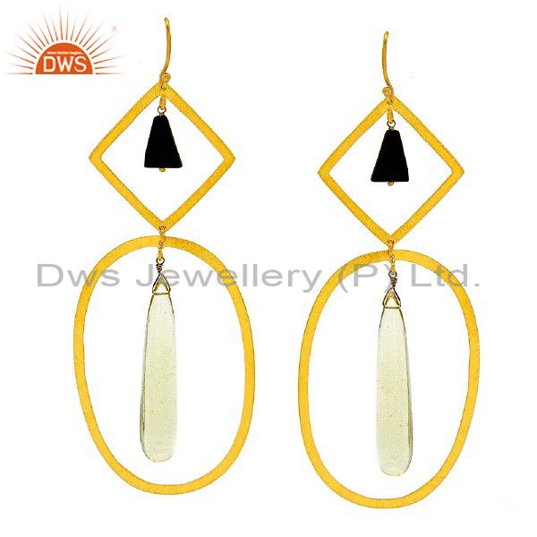 22K Yellow Gold Plated Sterling Silver Lemon Topaz And Black Onyx Dangle Earring