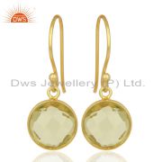22K Yellow Gold Plated Sterling Silver Lemon Topaz Gemstone Dangle Earrings