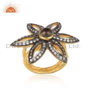 22K Yellow Gold Plated Sterling Silver Smoky Quartz And Cz Polki Dangle Earrings