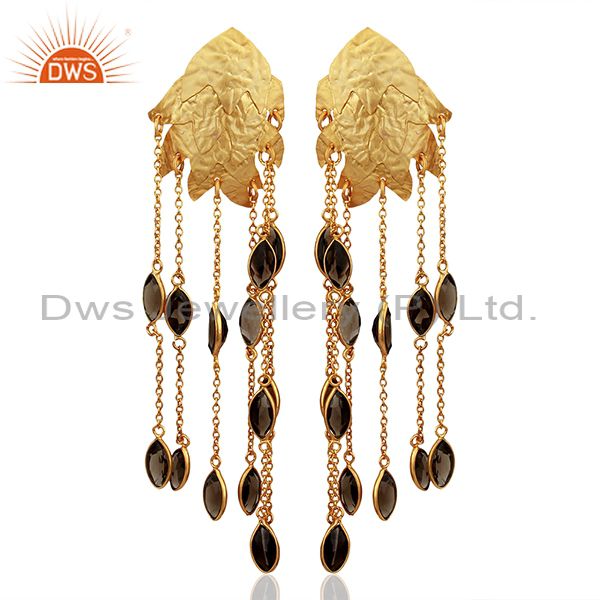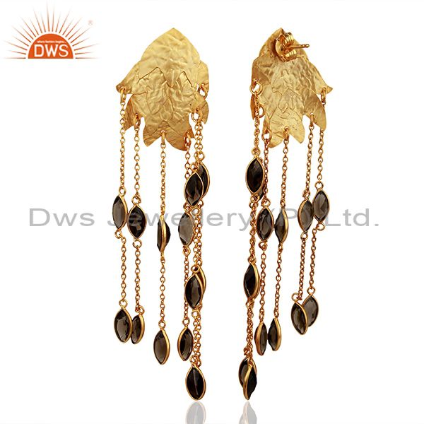 22K Yellow Gold Plated Sterling Silver Smoky Quartz Chain Chandelier Earrings