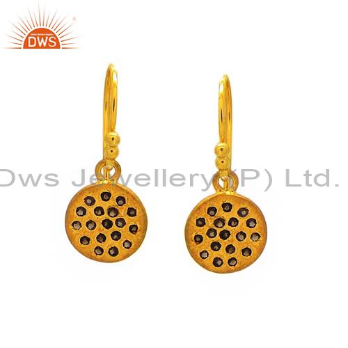 22K Yellow Gold Plated Sterling Silver Smoky Quartz Disc Dangle Earrings