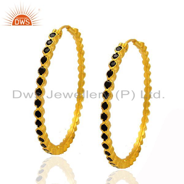 22K Yellow Gold Plated Sterling Silver Smoky Quartz Gemstone Hoop Earrings