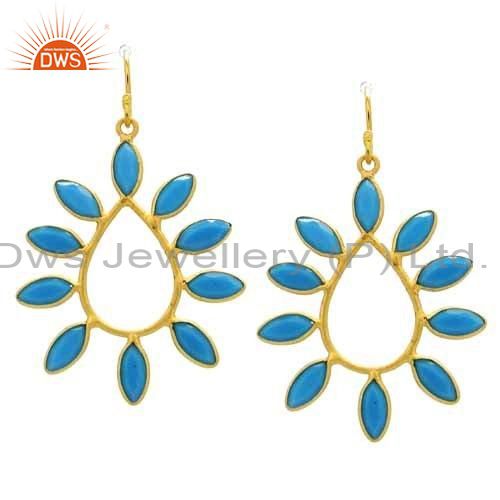 22K Yellow Gold Plated Sterling Silver Turquoise Designer Teardrop Earrings