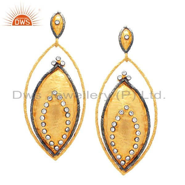 22K Yellow Gold Plated Sterling Silver White Zircon Designer Dangle Earrings