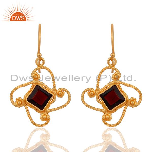 24K Gold Over Solid Sterling Silver 925 Twisted Designer Garnet Gemstone Earring