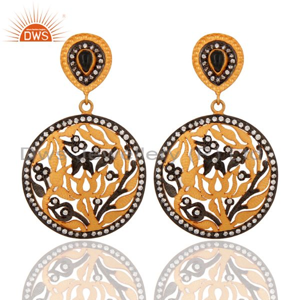 24K Gold Plated 925 Sterling Silver Cubic Zirconia Lotus Flower Design Earring