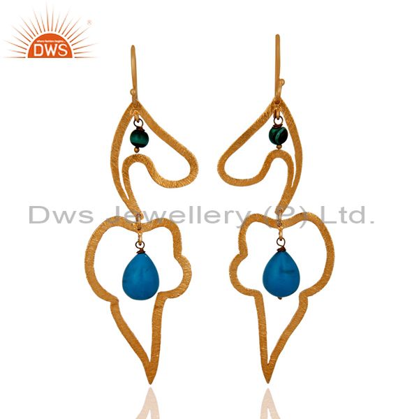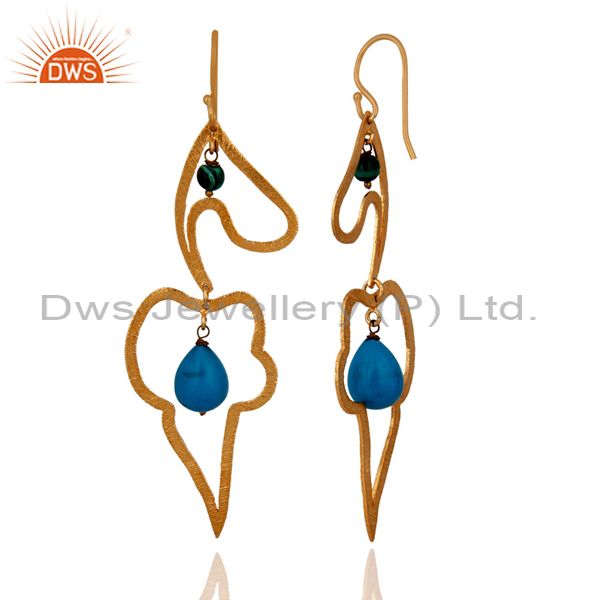 24K Gold Plated Handmade Sterling Silver 925 Malachite Gemstone Dangle Earrings