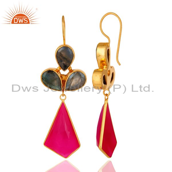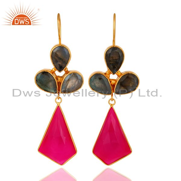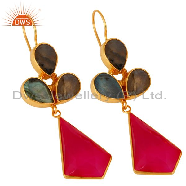 24K Gold Plated Labradorite And Dyed Chalcedony Handmade Earrings