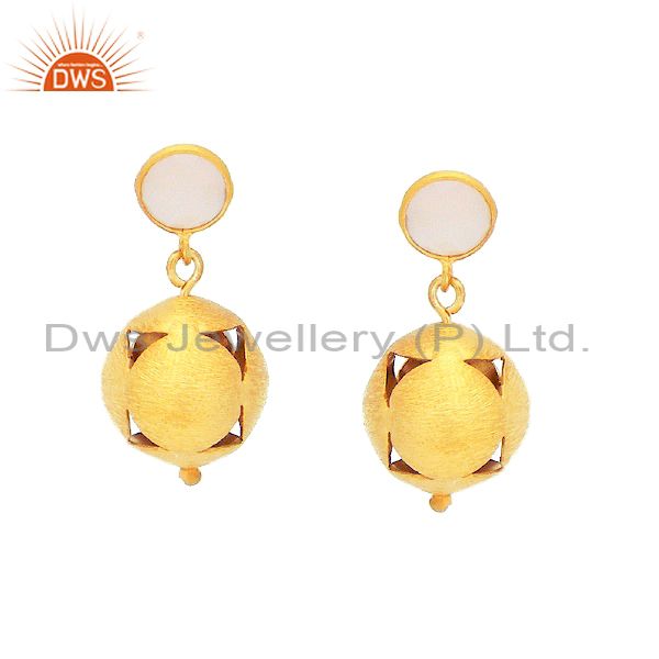 24K Gold Plated Sterling Silver Chalcedony Spheres Designer Dangle Earrings
