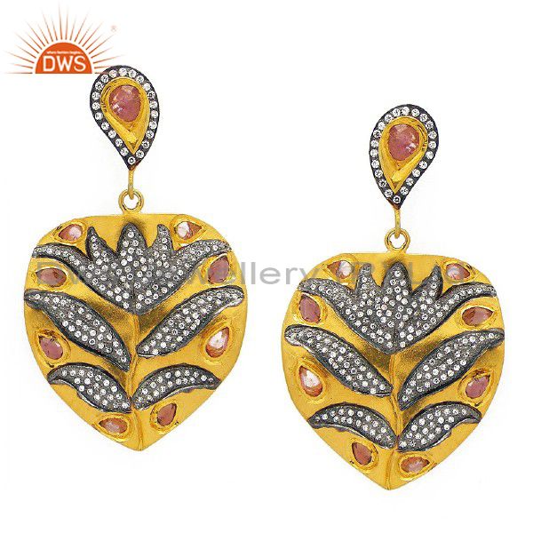 24K Gold Plated Sterling Silver Cz Crystal Polki And Tourmaline Dangle Earrings