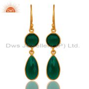 24K Gold Plated Sterling Silver Faceted Green Onyx Gemstone Drop Earrings