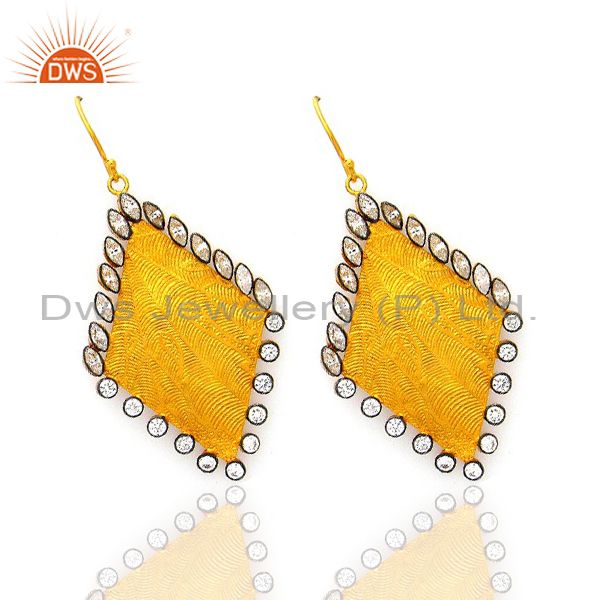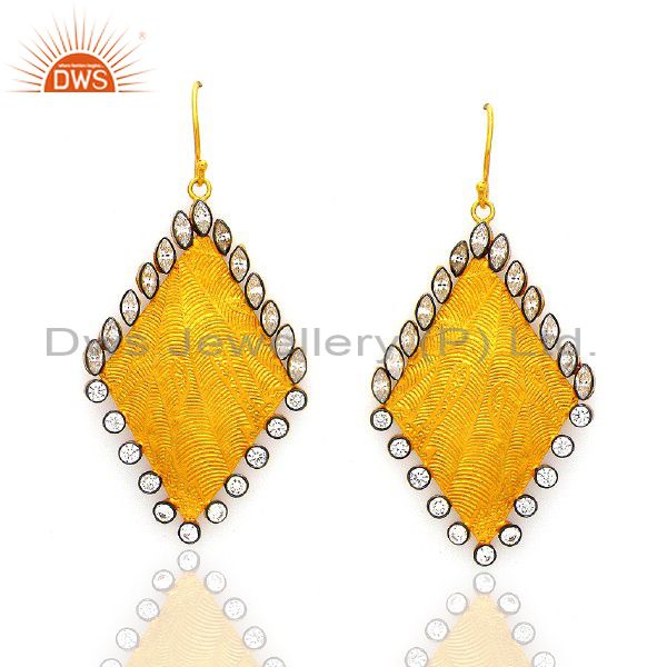 24K Yellow Gold Plated Brass Cubic Zirconia Textured Designer Earrings