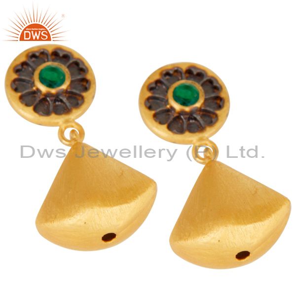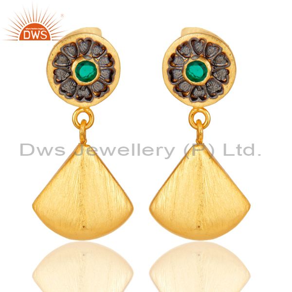 24K Yellow Gold Plated Brass Hydro Green Designer Fashion Dangler Earrings