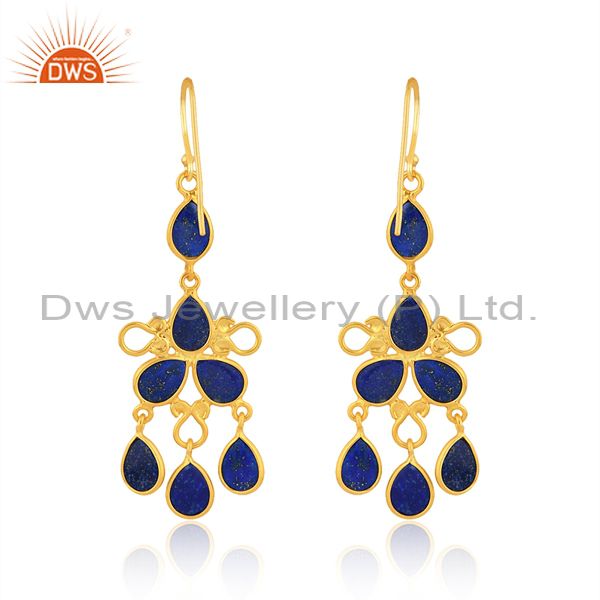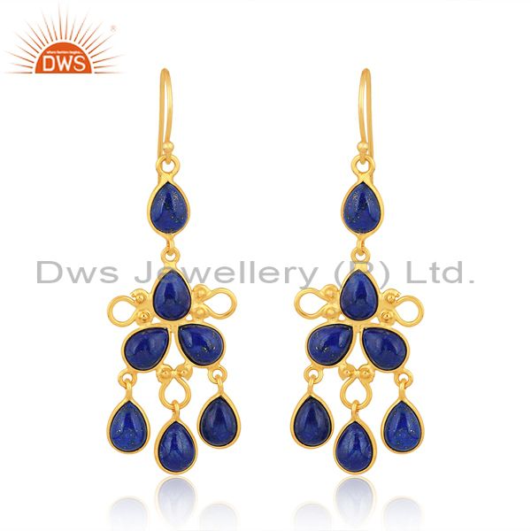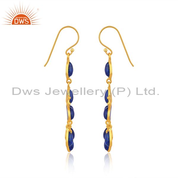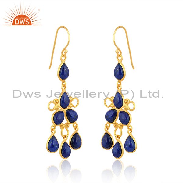 24K Yellow Gold Plated Brass Lapis Lazuli Gemstone Fashion Dangle Earrings