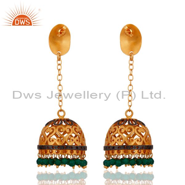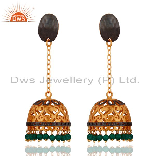 24K Yellow Gold Plated Natural Green Onyx Gemstone Handcrafted Designer Earrings