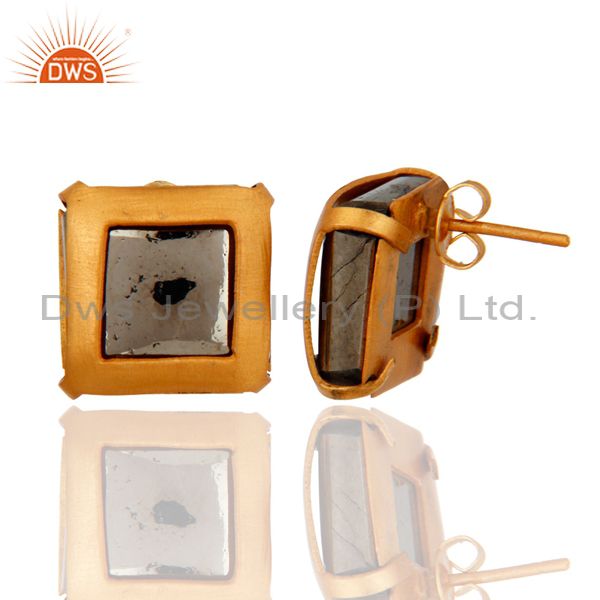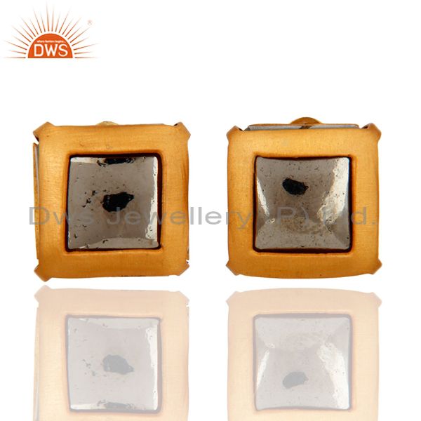 24K Yellow Gold Plated Pyrite Druzy Womens Fashion Stud Earrings