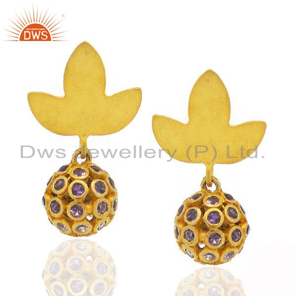 24K Yellow Gold Plated Sterling Silver Amethyst Gemstone Spheres Dangle Earrings