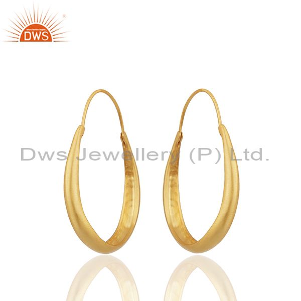24K Yellow Gold Plated Sterling Silver Circle Design Hoop Earrings