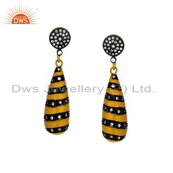 24K Yellow Gold Plated Sterling Silver Cubic Zirconia Designer Teardrop Earrings