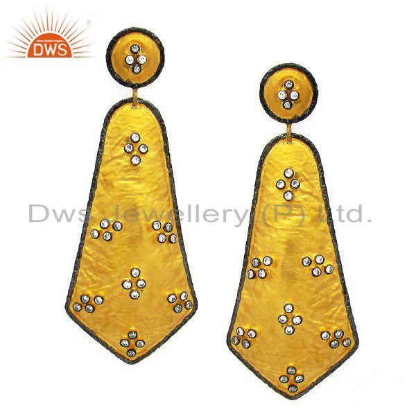24K Yellow Gold Plated Sterling Silver Cubic Zirconia Womens Dangle Earrings