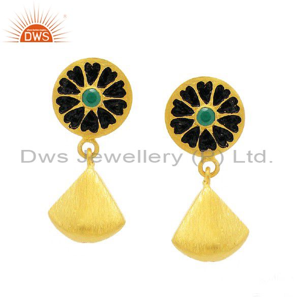 24K Yellow Gold Plated Sterling Silver Green Onyx Fashion Dangle Earrings