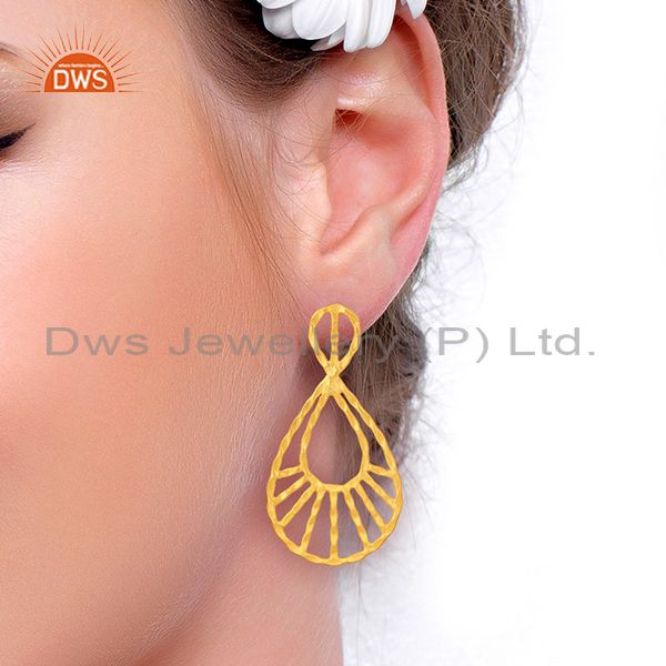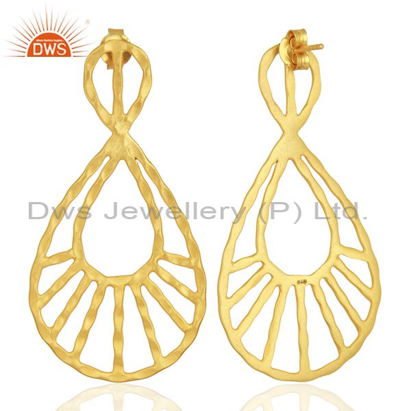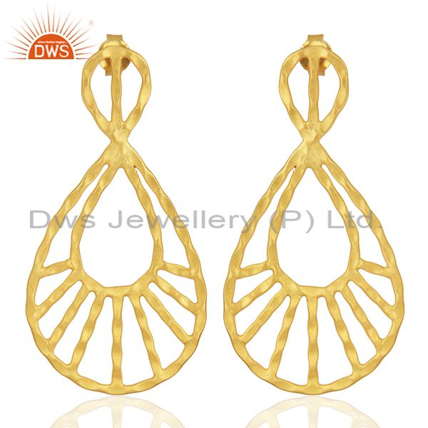 24K Yellow Gold Plated Sterling Silver Hammered Designer Drop Dangle Earrings