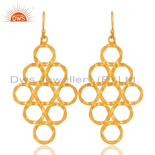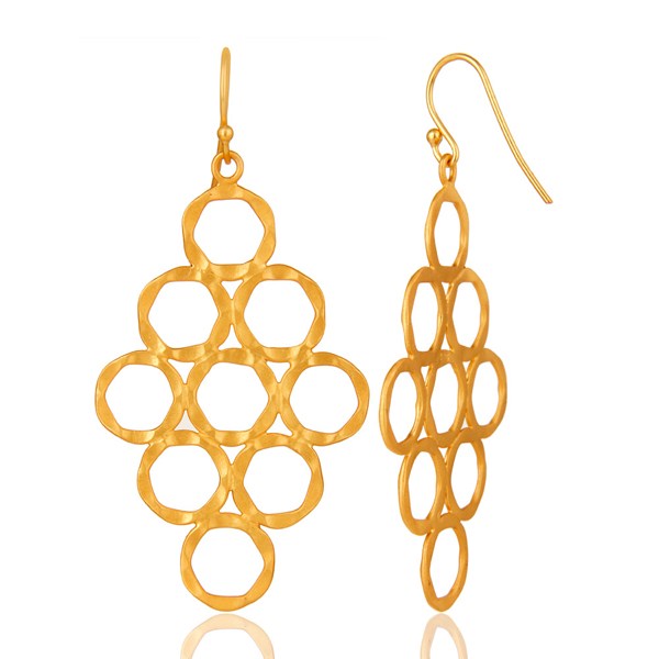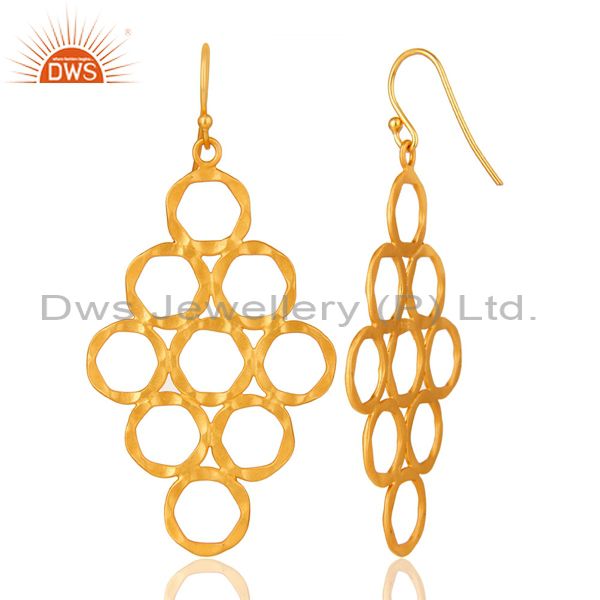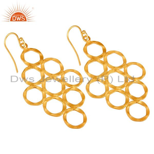 24K Yellow Gold Plated Sterling Silver Hammered Open Circle Dangle Earrings