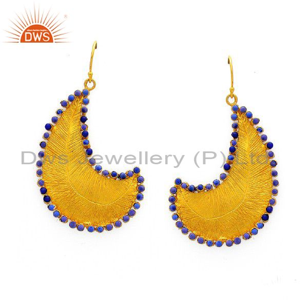 24K Yellow Gold Plated Sterling Silver Lapis Lazuli Designer Teardrop Earrings