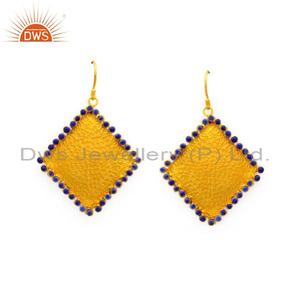24K Yellow Gold Plated Sterling Silver Lapis Lazuli Gemstone Dangle Earrings