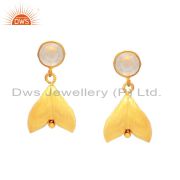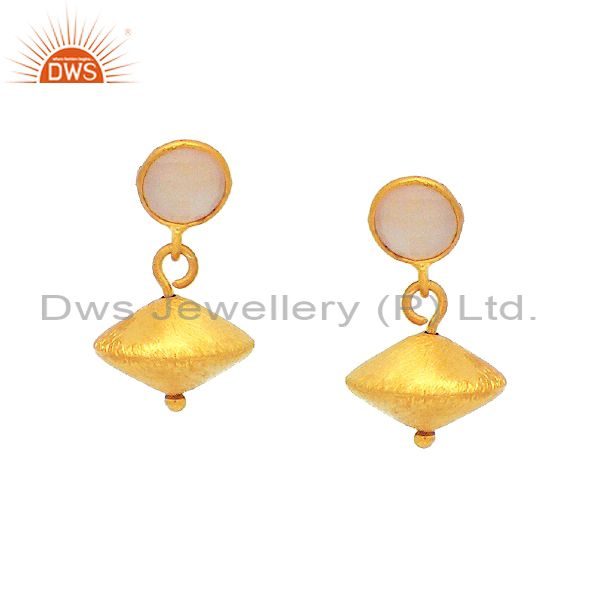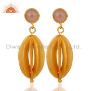 24K Yellow Gold Plated Sterling Silver Matte Rose Chalcedony Dangle Earrings