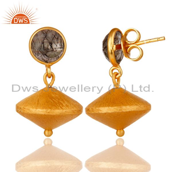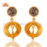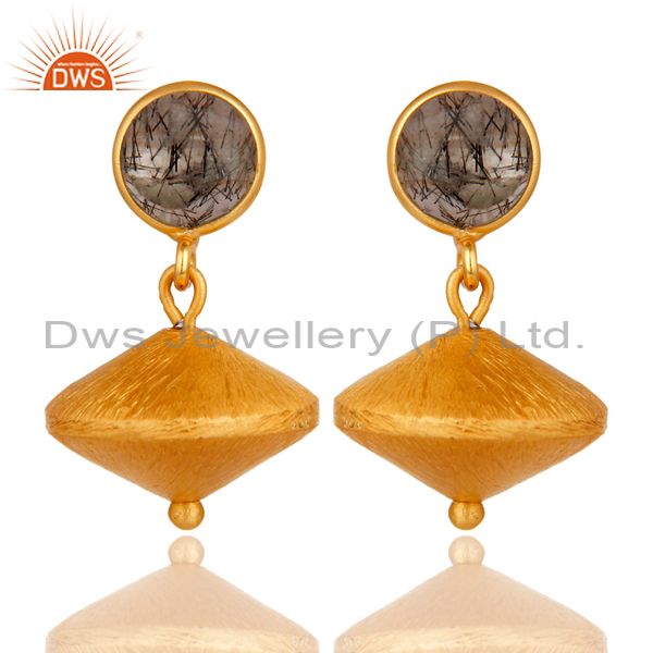 24K Yellow Gold Plated Sterling Silver Matte Toumulated Quartz Dangle Earrings