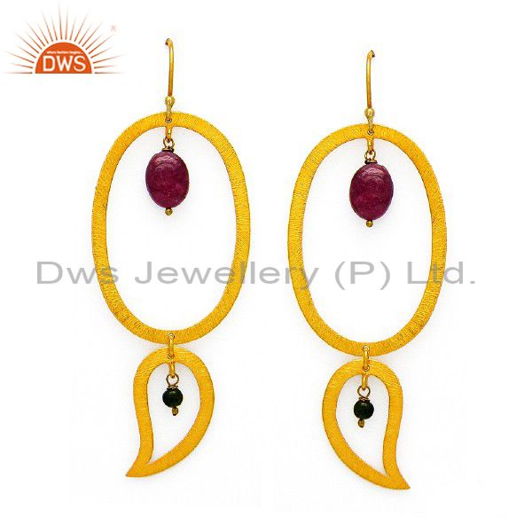 24K Yellow Gold Plated Sterling Silver Pink Tourmaline Designer Dangle Earrings