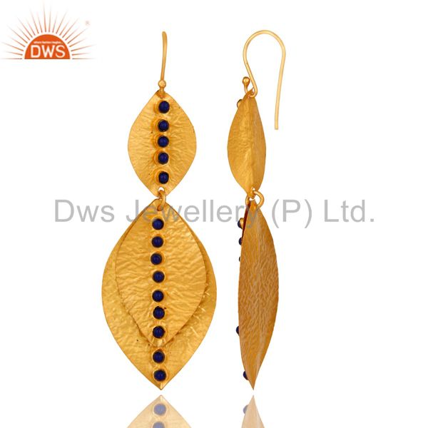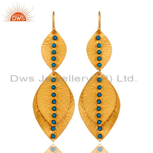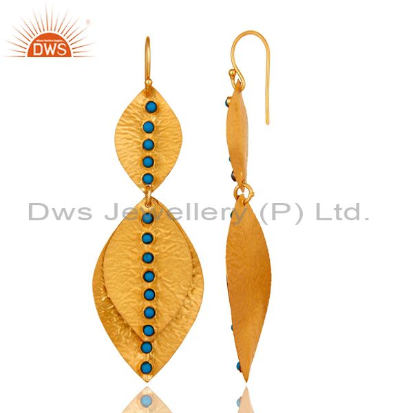 24K Yellow Gold Plated Sterling Silver Turquoise Petals Designer Dangle Earrings