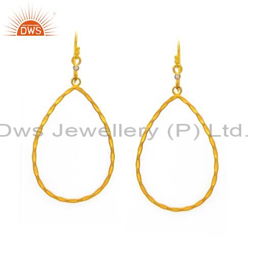 24K Yellow Gold Plated Sterling Silver White Topaz Hammered Teardrop Earrings