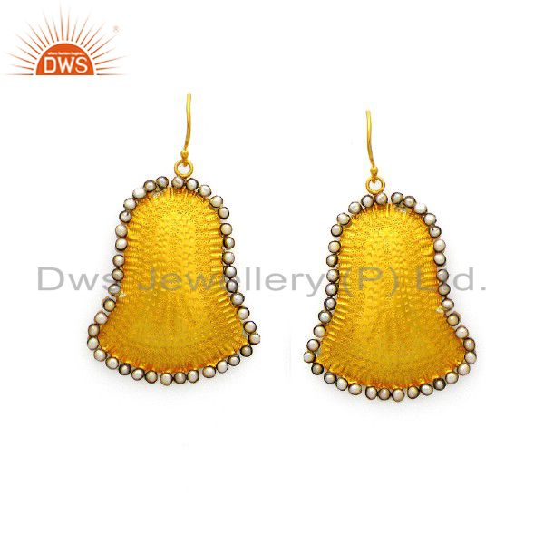 24K Yellow Gold Plated Sterling Silver White Zircon Designer Dangle Earrings