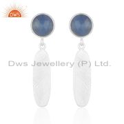 925 Fine Sterling Silver Bar Blue Chalcedony Gemstone Earring Wholesale