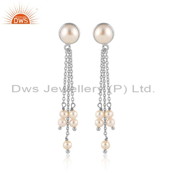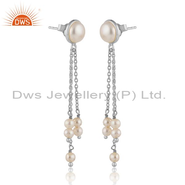 925 Fine Sterling Silver Designer Natural Pearl Gemstone Earrings