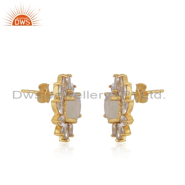 925 Silver Cz Rainbow Moonstone Gemstone Floral Stud Earring Jewelry