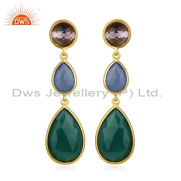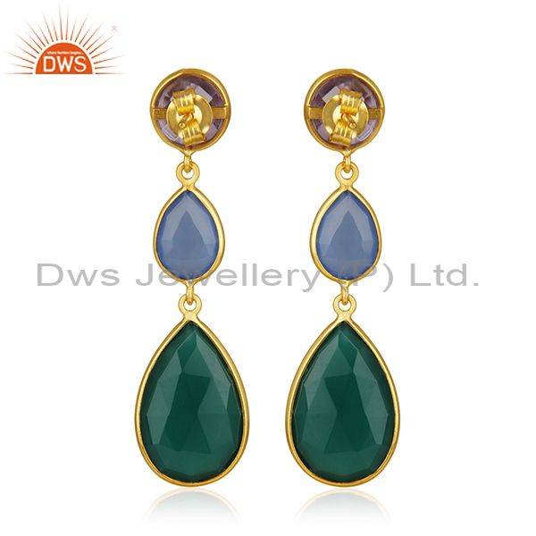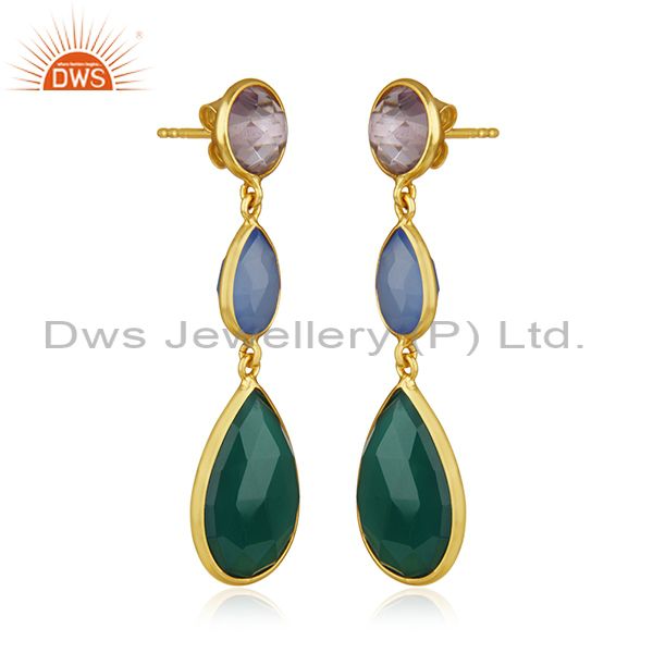 925 Silver Gold Plated Multi Gemstone Dangle Earrings Wholesale Supplier