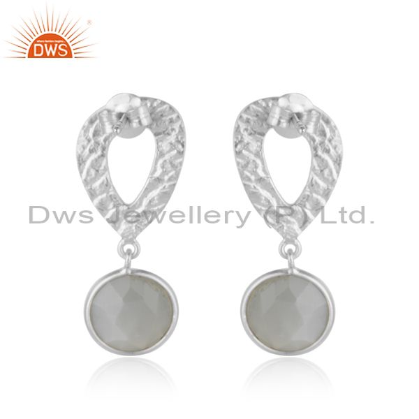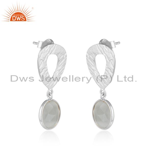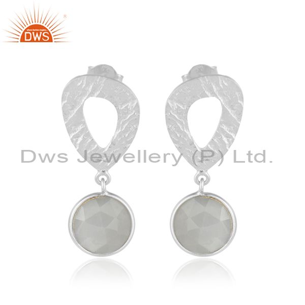 925 Silver Gray Moonstone Gemstone Texture Handmade Earrings Jewelry