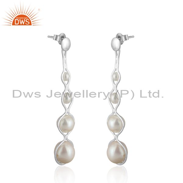 925 Silver Natural Pearl Long Dangle Earrings Wholesale Suppliers