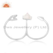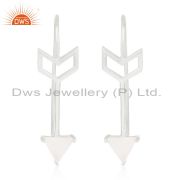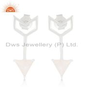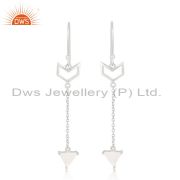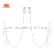 925 Silver Rainbow Moonstone Designer Ear Cuff Stud Earrings With Chain