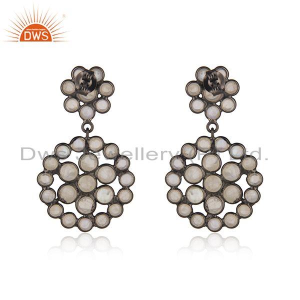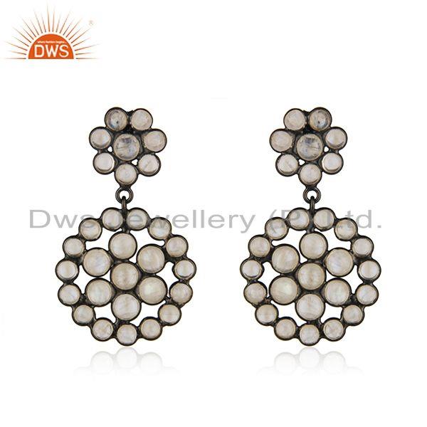 925 Silver Rhodium Plated Silver Rainbow Moonstone Earrings Jewelry