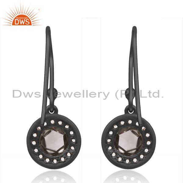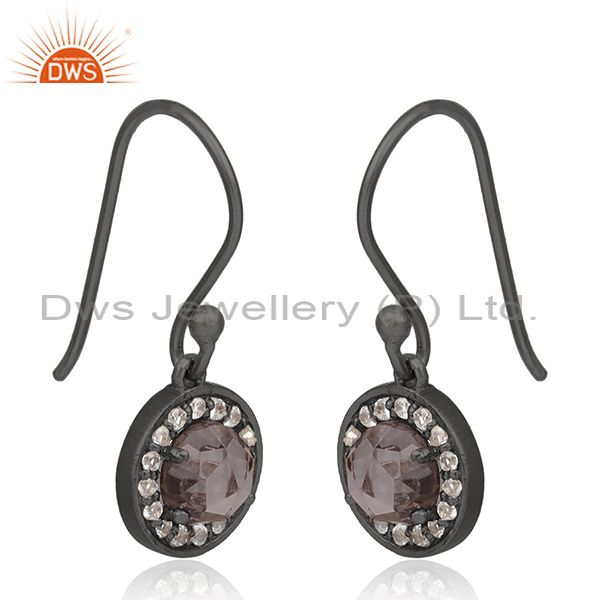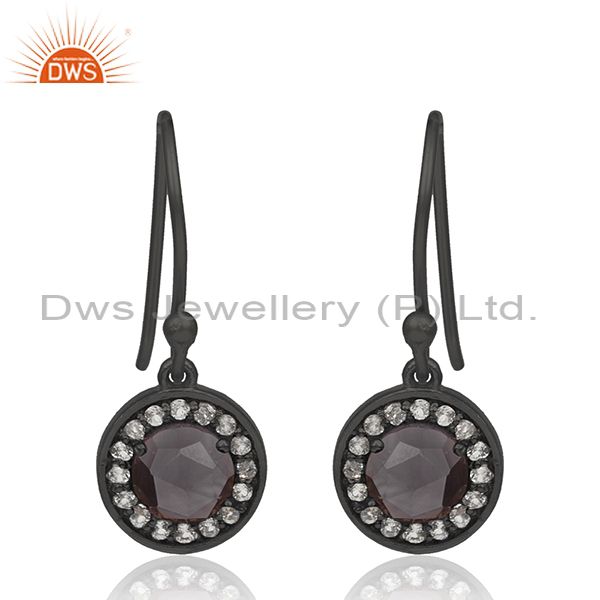 92.5 Silver Smoky And Zircon Gemstone Black Drop Earrings Manufacturer India